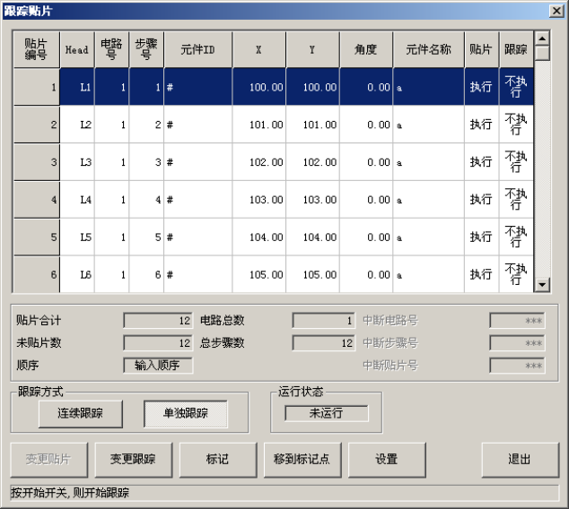 为了进行贴片跟踪,按照贴片编号顺序显示贴片元件信息。