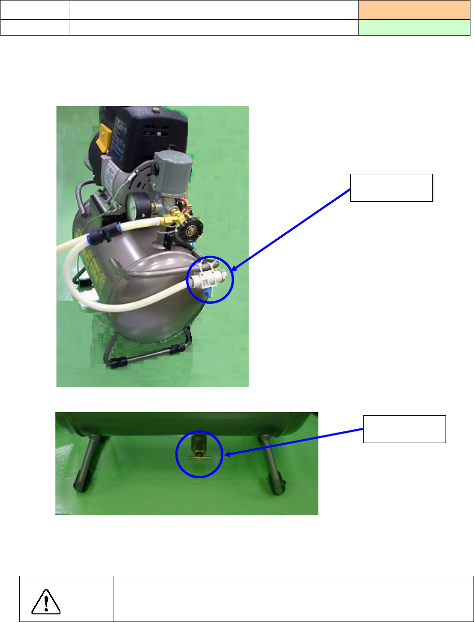 第 1 部 基本篇 第 3 章 维护 1 )请拔出压 缩机的排 水管。 打开手动阀释放 压缩机内的残余压力 。 排除残余压力后 ,将接油装置放置在 压缩机下部,打开排 水手柄排除积水。 排除积水时请务 必先释放残余压力后 再实施排水。 清扫部位 3-3-10 压缩机(选购项) 实施频度: 毎日 清扫内容 排除积水 使用工具: 接油装置 手动阀 排水手柄 注意 3- 27