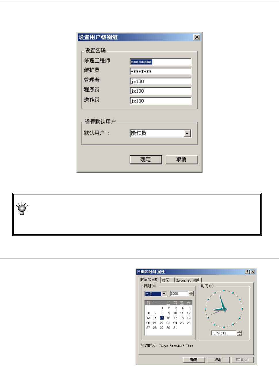 为了防止对机器进行错误操作而引起误动作,本设备根据作业人员的操作熟练程度,设置用户级