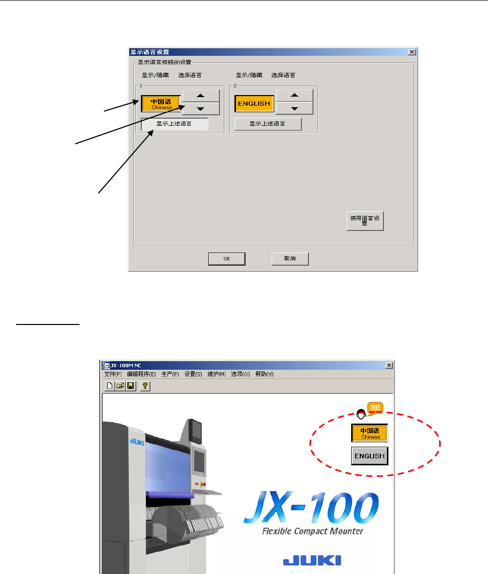 选择“OK”后,画面上显示所选择的语言切换按钮。选择“取消”后,设定内容将无效。