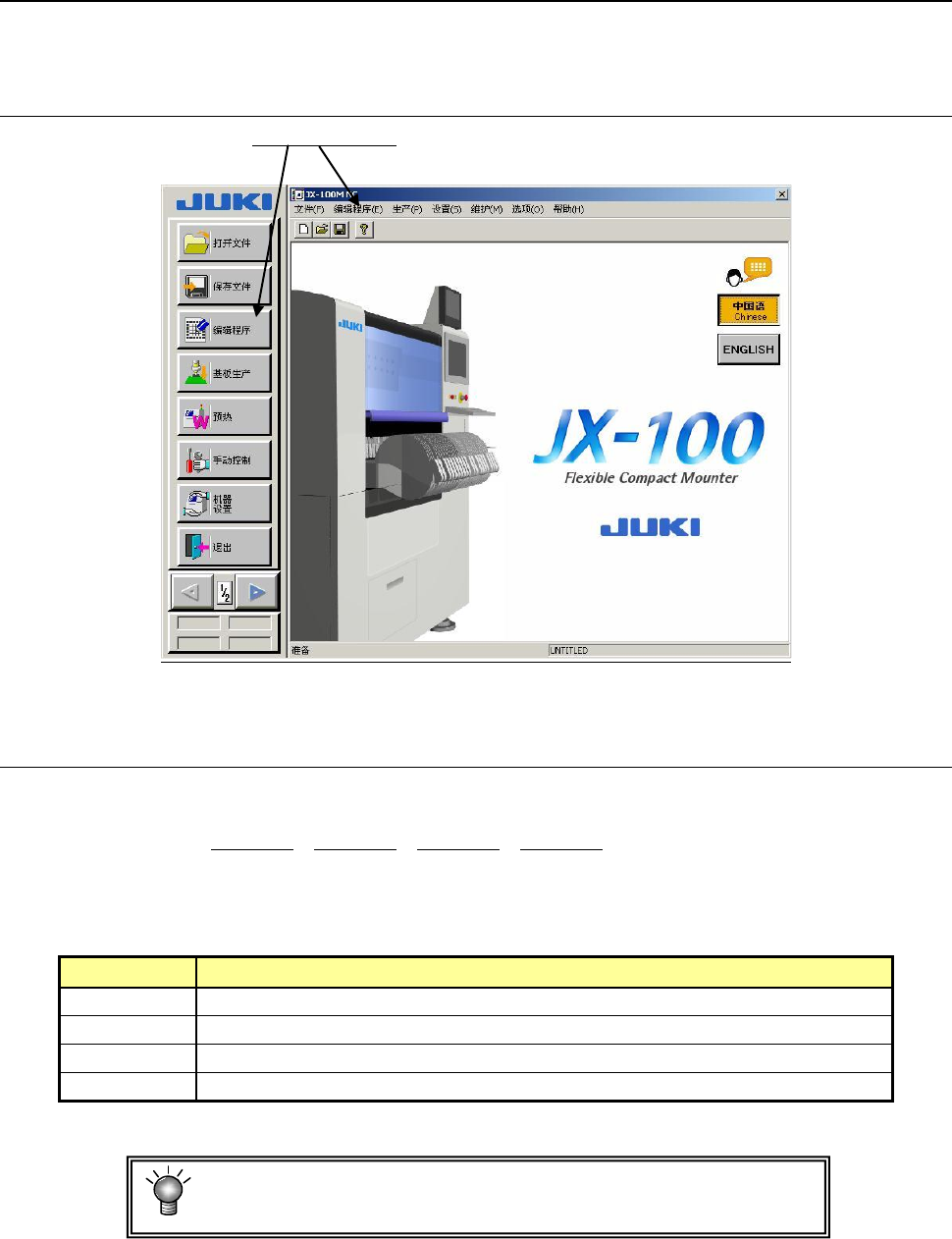 第 1 部 基本篇 第 4 章 制作生产程序 4-3 制作生产程序 生产基板时,需 要制作生产程序数据 。 启动程序编辑后 ,可制作和编辑生产 程序。 4-3-1 启动生产程序编辑 从下面的桌面画 面启动编辑程序。 图 4-3-1-1 编辑程序的 启动 4-3-2 生产程序的制作步骤 生产程序由表 4- 3-2-1 中的 4 个项目构成。 生产程序按照 基板数据 →贴片数据→ 元件数据→吸取数据 的 顺序来制作。 键盘输入的文字 仅可使…