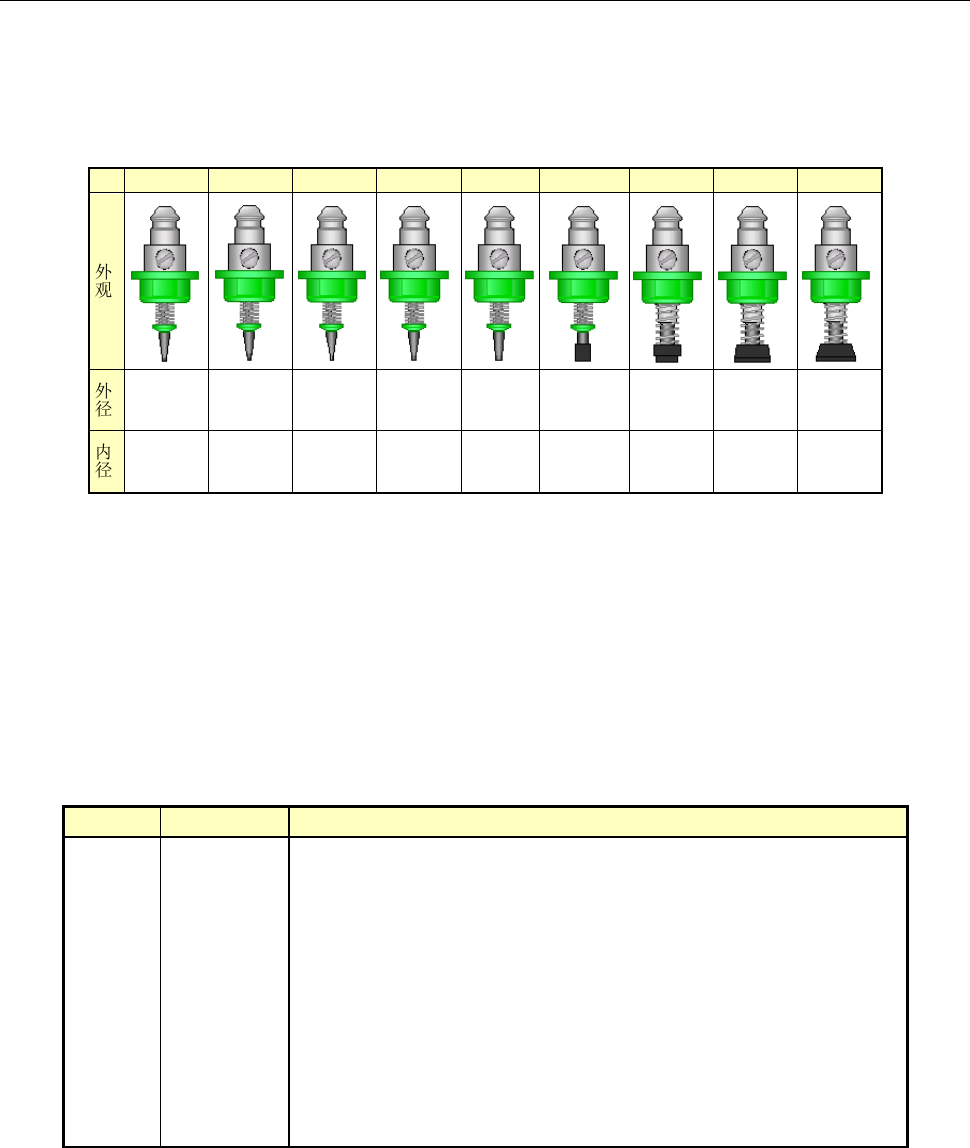 表 1-2-1-2 吸嘴 No.和最小宽度对照表