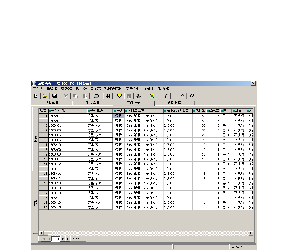 “元件数据”是对在“贴片数据”输入的“元件名称”,输入有关的详细信息数据。