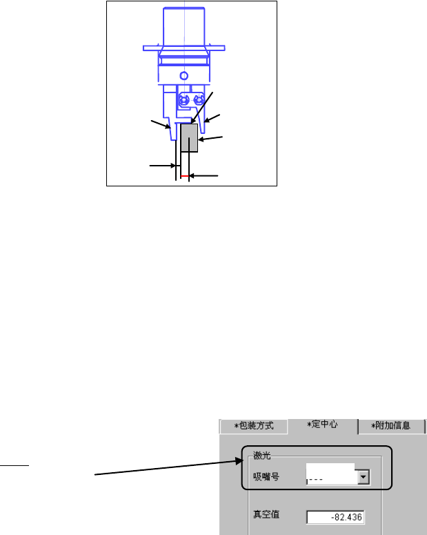 ① 抓取位置: “Y”项,输入元件中心与夹持吸嘴固定侧手臂抓取面中心的偏移值(见