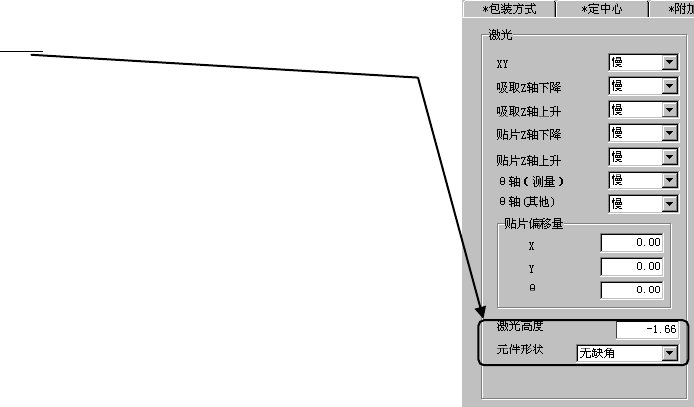 ④ 吸取高度调整: 吸取时吸取高度的偏移值(c 与元件上底面之间的间隙)。
