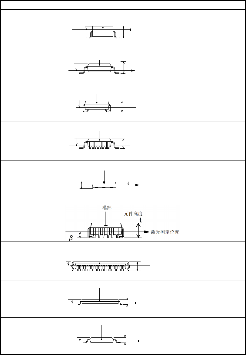第 1 部 基本篇 第 4 章 制作生产程序 (4) 激光高度 设置激光定中心 时的测量高度。输入 从吸嘴顶端到激光照 射到的测量位置的 距离。 虽然根据元件高度与元 件种类自动决定 初始值,但有时不同的元 件 ( 激光测定位置 为圆筒形或透 明时等 ) ,需要改变初始值。 请设置 可进行稳定识 别的高度。 ◆ 默认值 激光高度的默认 值有时根据元件的种 类和高度来设置。 下表给出了 元件种类和激光高度 的默认值 的关系。 表 4-3-…