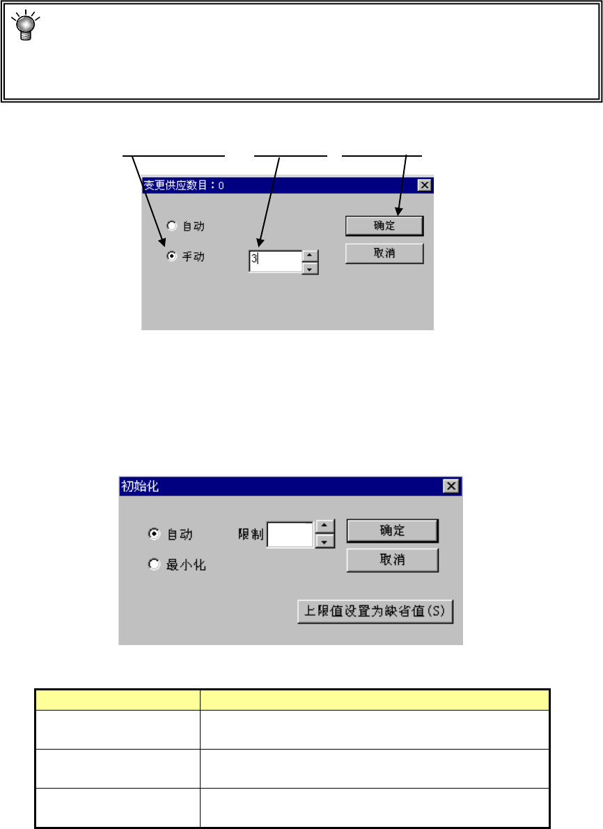 请单击“手动”后,输入供应数,单击“确定”。