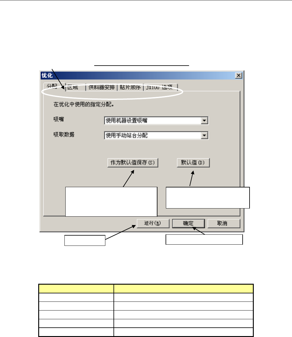 优化,需要进行下列图示(包括”分配”的)5项条件设置。