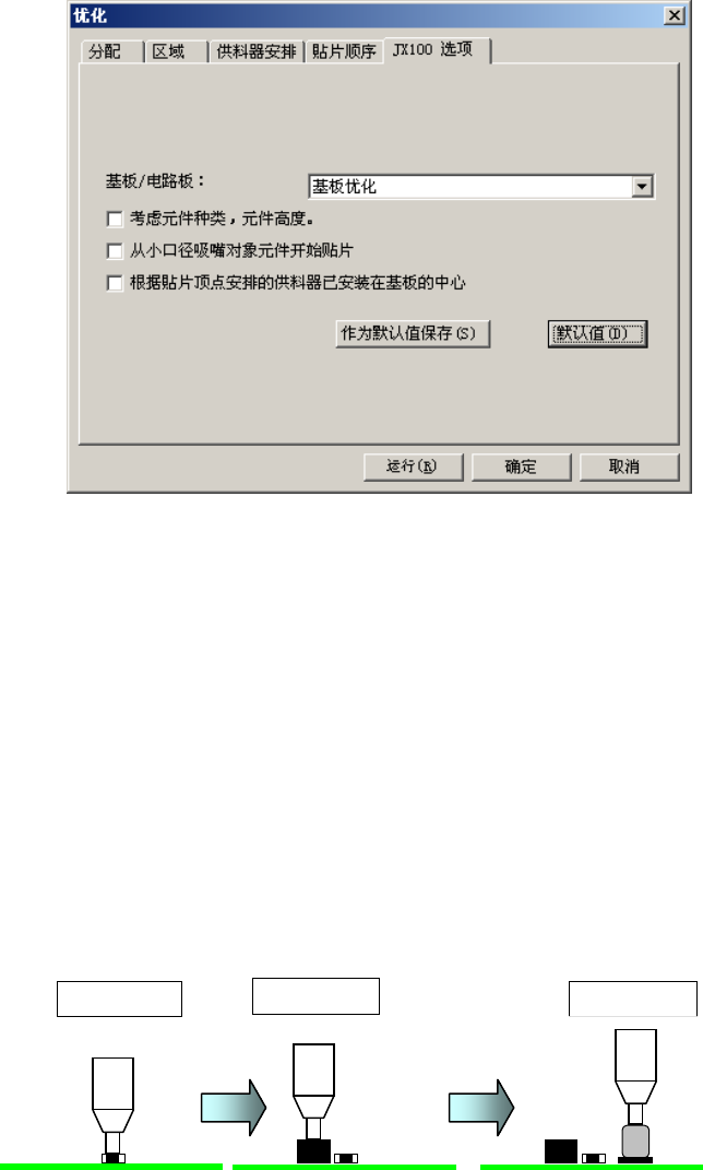 第 1 部 基本篇 第 4 章 制作生产程序 ( 4 )贴片顺序 指定贴片数据的 排列 , 是按输入 顺序 , 还是优化顺 序。 图 4-4-1-2-6 优化 ● 分配生产程序文件输入顺 序 :不改变贴片 数据的排列顺序。 ● 在每个优化命令中分配 :将贴片 数据的排列顺序改 为优化顺序。 从菜单栏上选择 “优化 / 分开贴片 数据 ” ,可 参照 . 输入 顺序。 注意 “ 在每个优化命令中分配” ,是为优化数据 进行编辑的功能 ( …