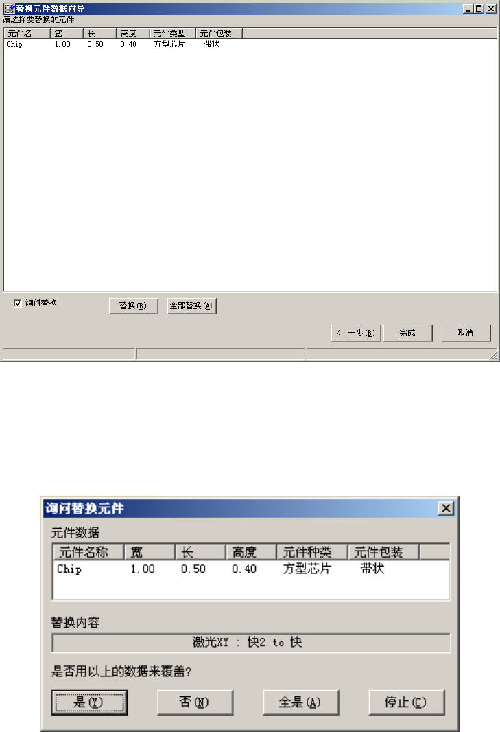 选中选项时,在对每1项的变更替换前,询问确认替换内容的画面。