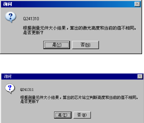 根据尺寸计算出的激光高度或芯片站立判定高度与原来的值不同时,显示如下询问。