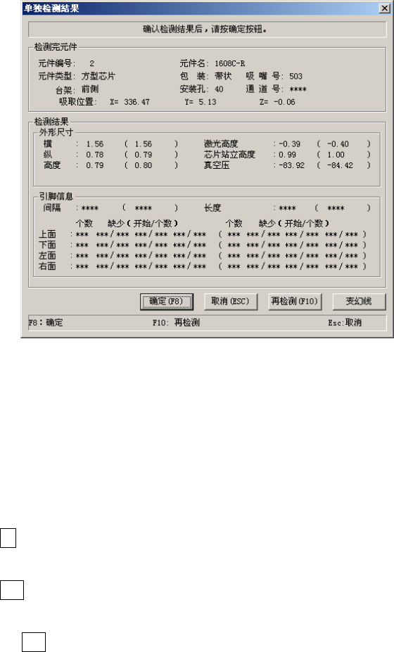 使检测结果生效,将结果值储存到元件数据中。然后返回原来的单独检测条件的设置画面。