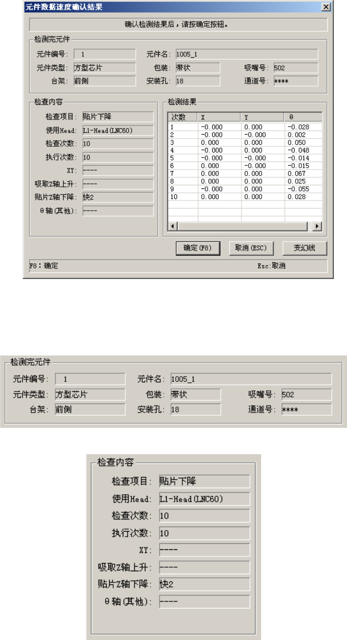 按下确定([F8] 键)使检查结果成为有效值、并存入元件数据中。然后返回原来的确认速度