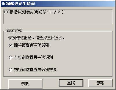 按下“忽略”按钮时,则其后将不以每一电路/每一基板为单位对BOC进行识别。
