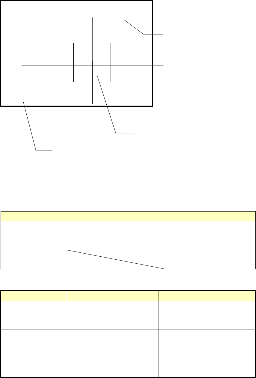 根据元件尺寸,显示在监视器中的元件中心及四角的显示如下所示有所不同。