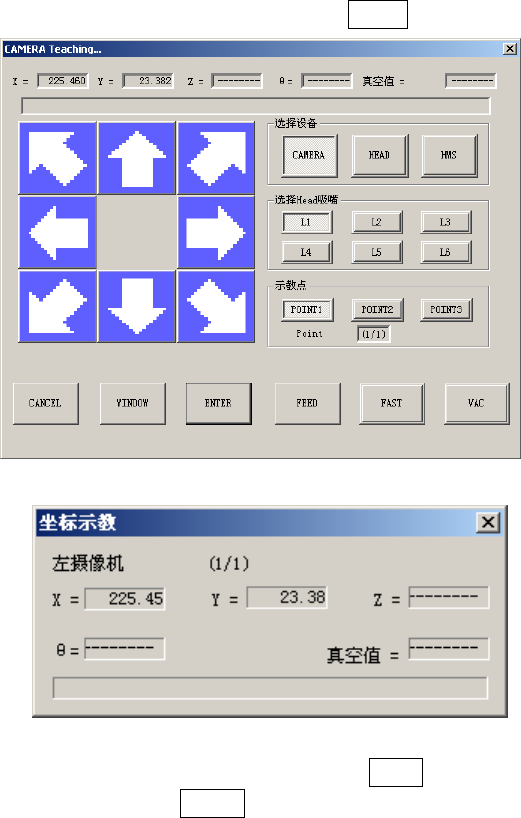 ② 按示教按钮或 HOD 装置按钮,进行坐标示教,按 ENTER 键确定。
