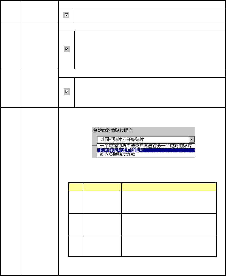 表 5-2-3-2 多电路的贴片顺序的选项及概要