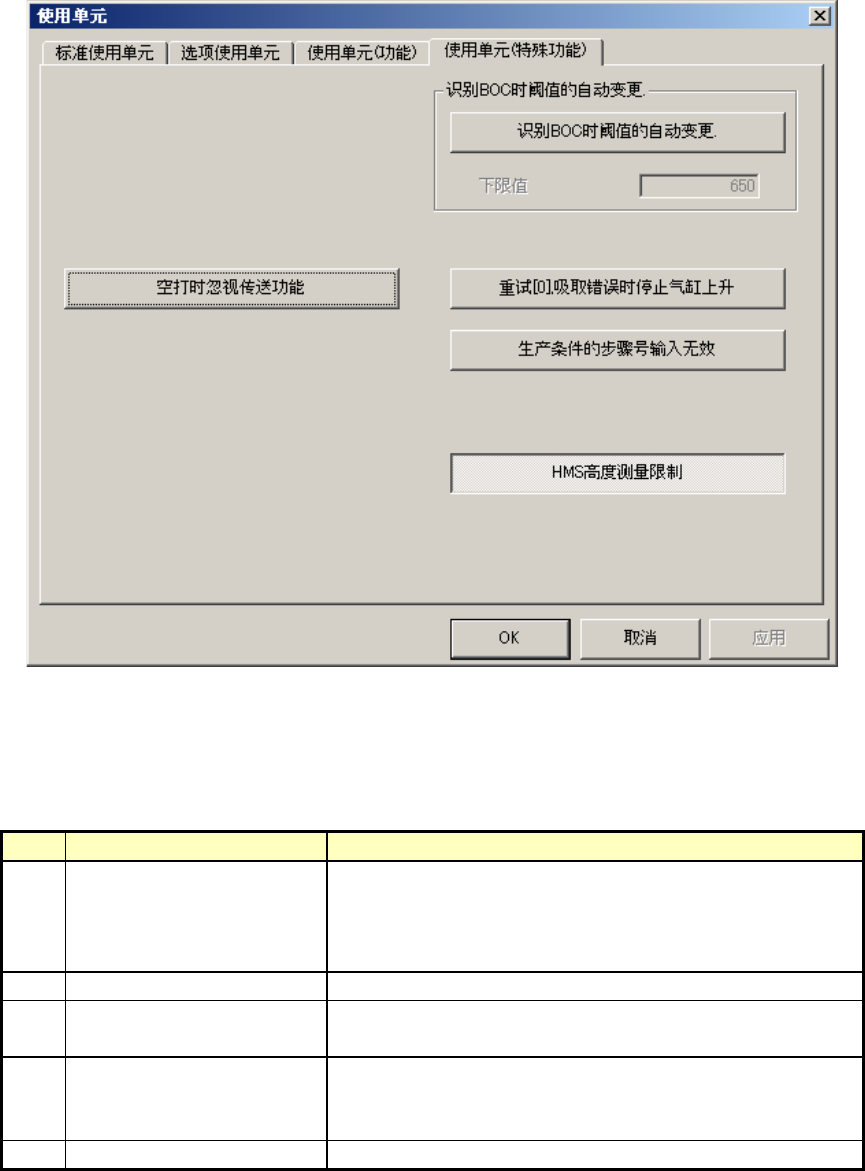 选择“使用单元(功能)”标签后,显示如下“使用单元(功能)设置”画面。