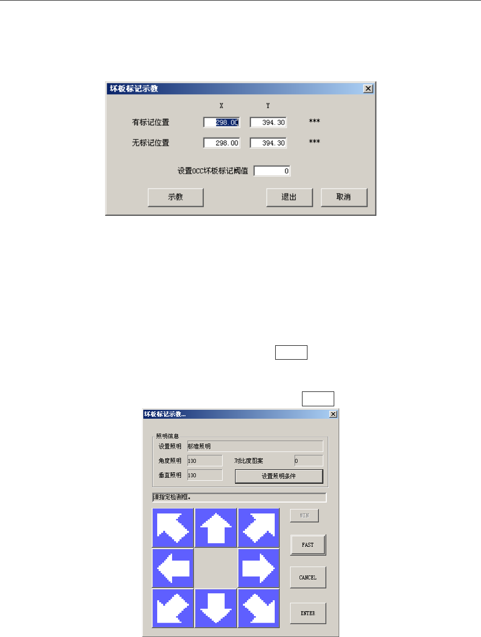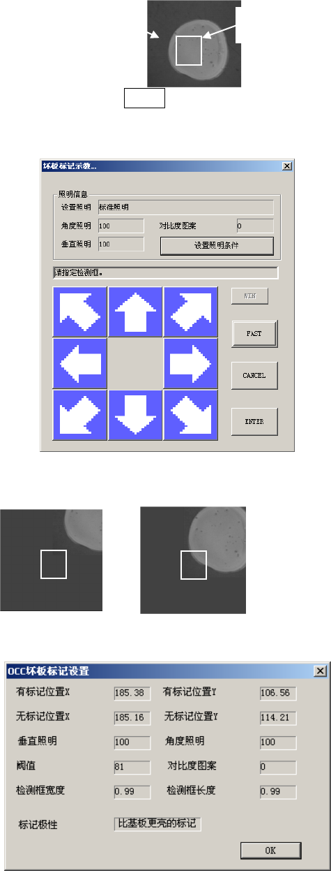 把光标对准设置 OCC 坏板标记阈值的编辑框,按下 HOD 的 CAMERA 键或按下示教按钮开始示教。