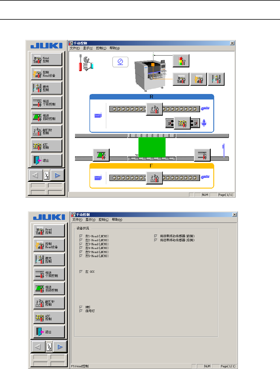 各贴片头装置的控制、传感器状态显示