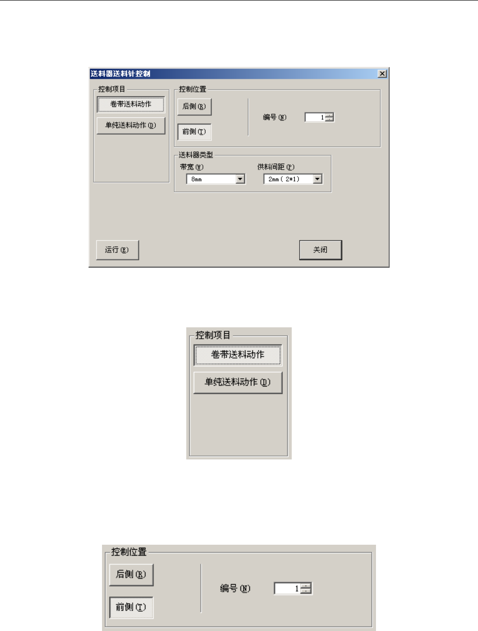 在控制项目中选择了“卷带送料动作”时,可按控制位置(按钮)及编号(编辑框),选择所要控制