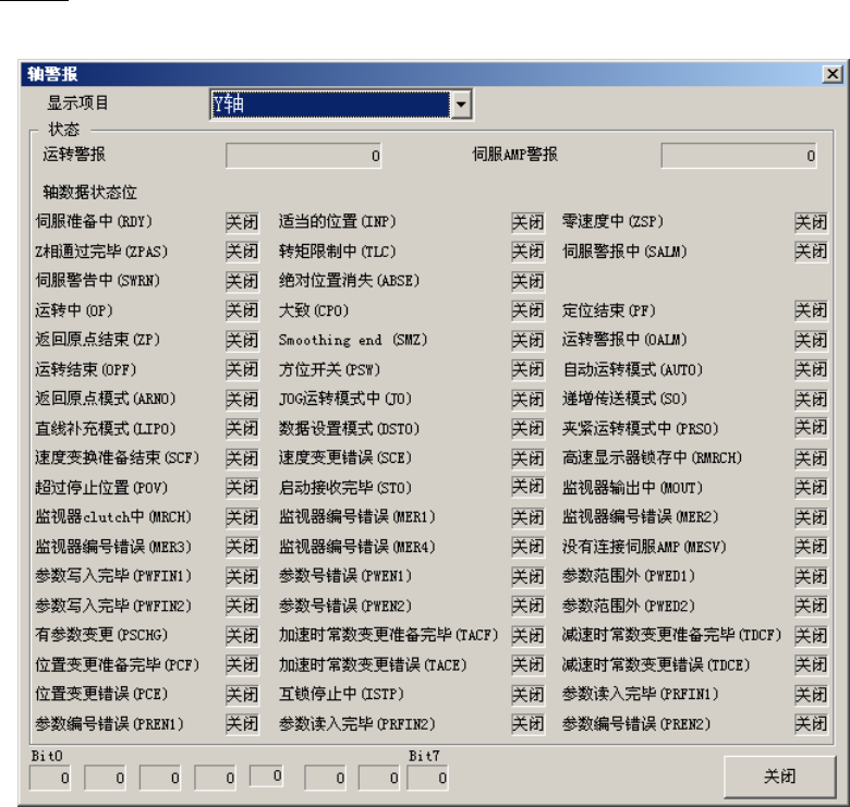 在驱动情况对话框上,按下[轴警报]按钮后,显示如下画面。