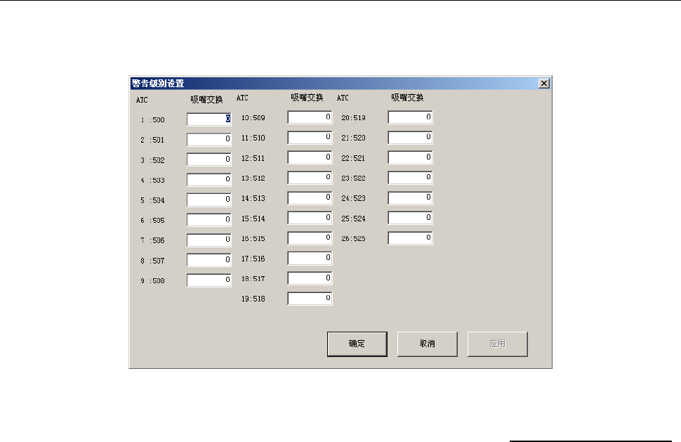 从菜单栏中选择“数据”/“设置警告级别”/“各吸嘴”,则显示图8-3-3-1。