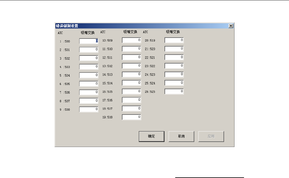 从菜单栏中选择“工具”/“错误级别设置”/“各吸嘴”,则显示图8-3-4-1。