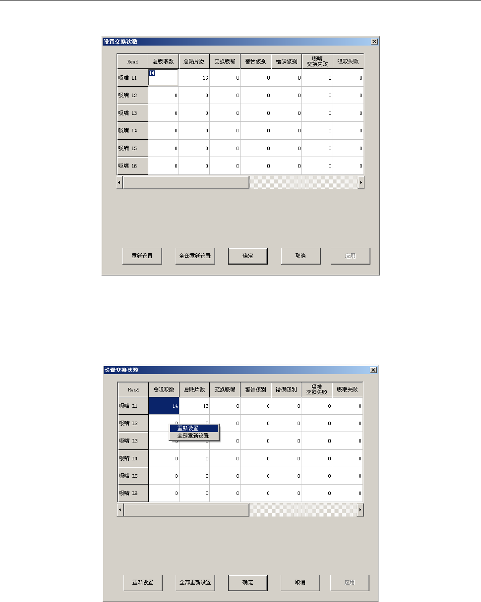 更换贴片头吸嘴时,将更换的贴片头吸嘴的更换次数设置为“0”,则可进行初始化。