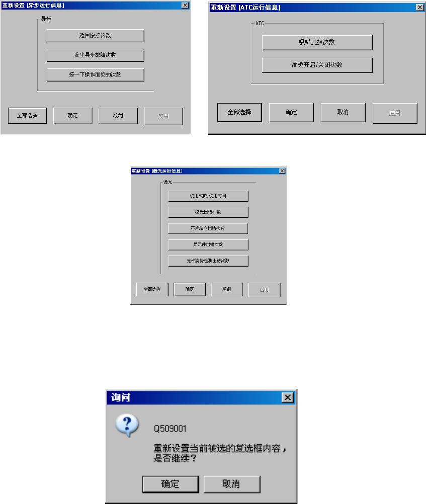 图 8-5-11-3 询问重新设置应用程序运行信息 图 8-5-11-4 询问重新设置真空泵运行信息