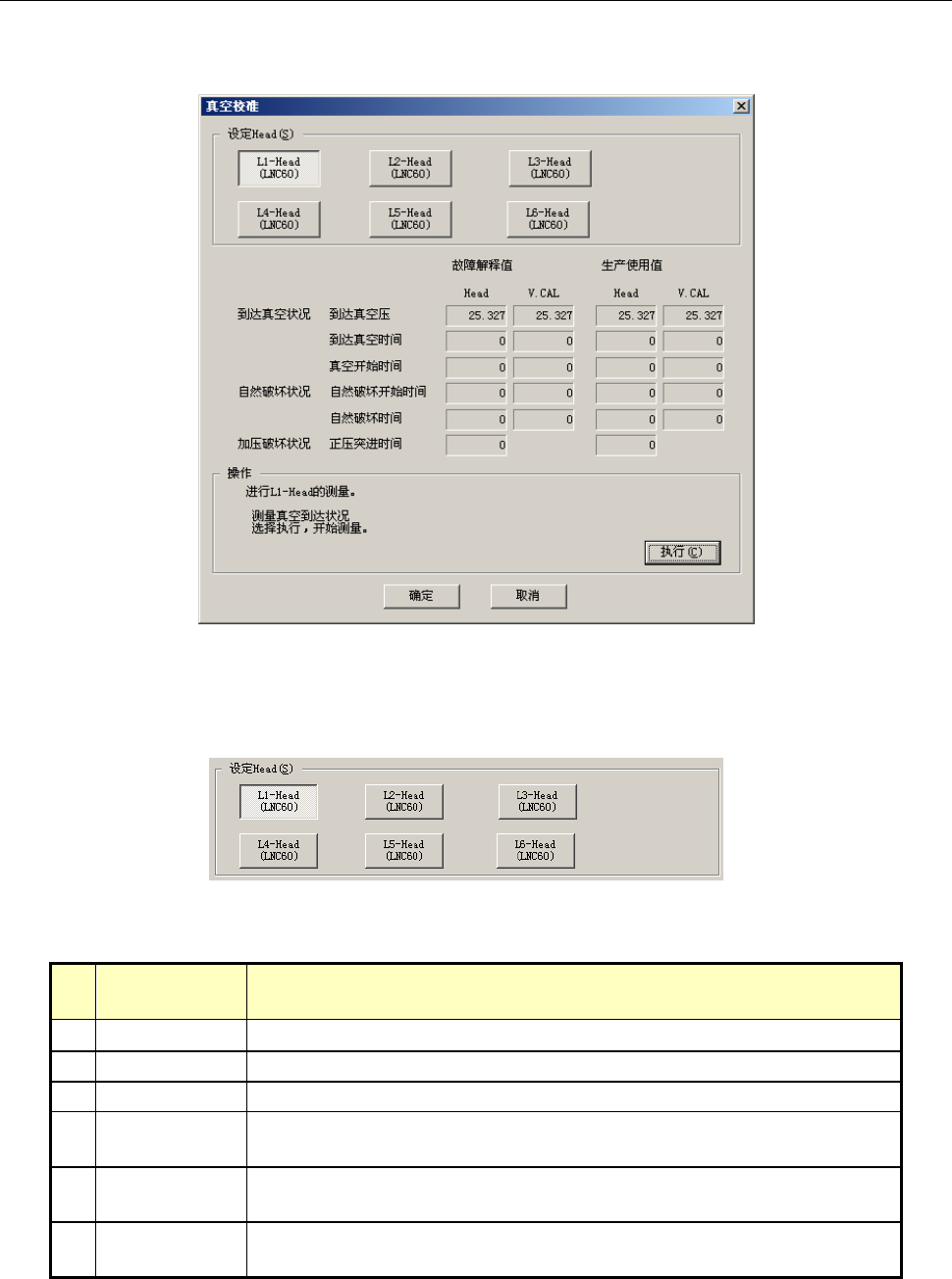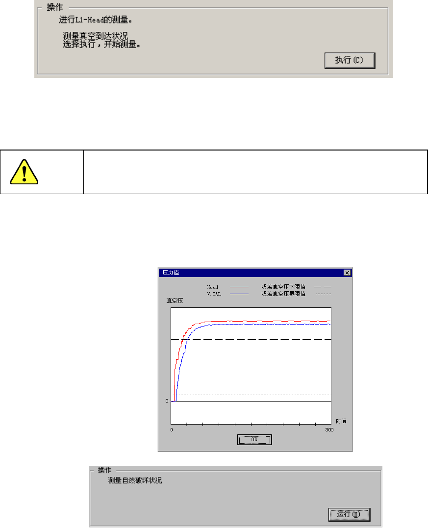 ① 设定Head将移动到真空校准上,测量3次真空到达状况。