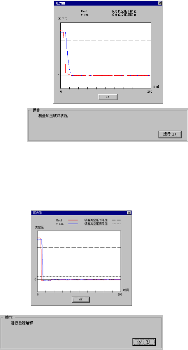 第 2 部 功能详细篇 第 9 章 自动校准 ② 设定 Head 将移动到真空校准 上,测 量 3 次自然破坏状况 。 · 显示第 2 次与第 3 次的平 均值。 · 测量后所显示的压力 值图表为第 3 次的数据。 请选择“运行”。 选择“运行”, 则自动测量加压破坏 状况。 ③ 设定 Head 将移动到 真空校准 上,测量 3 次加 压破坏状况。 · 显示第 2 次与第 3 次的平 均值。 · 测量后所显示的压力 值图表为…