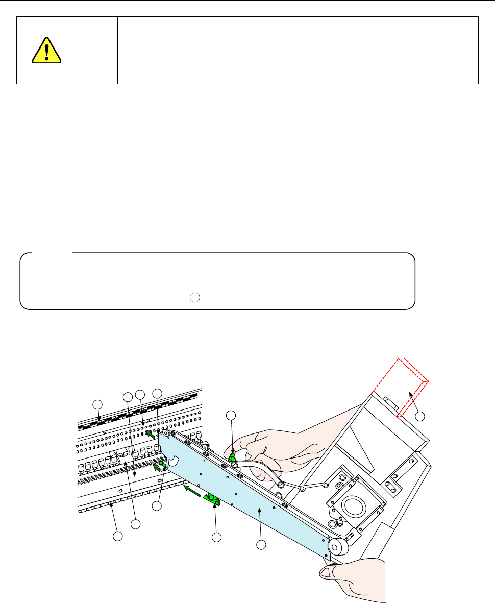 如在 XY 轴或贴片头正在动作时进行更换,散装送料器可能会接触到动作元