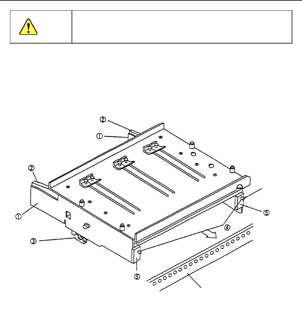 (3)在销④插入且前板⑤顶住固定板的位置上,放开边板①和锁紧杆②,用锁紧支架③固定。