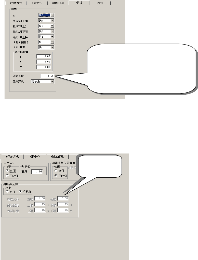 通常吸嘴的“激光高度”中应输入从元件上面(表面)到激光投射面的距离,而夹持吸嘴则