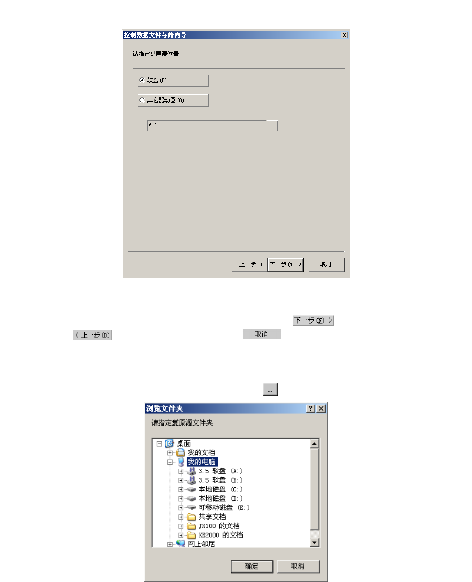 选择恢复源位置([软盘]或[其它驱动器])后,请 按 按钮。要变更操作内容等时,