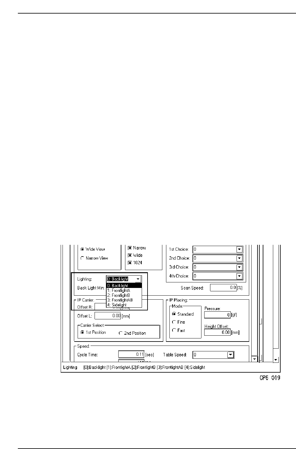 3. At the [Camera] - [Lighting] item, specify the desired part image acquisition format.