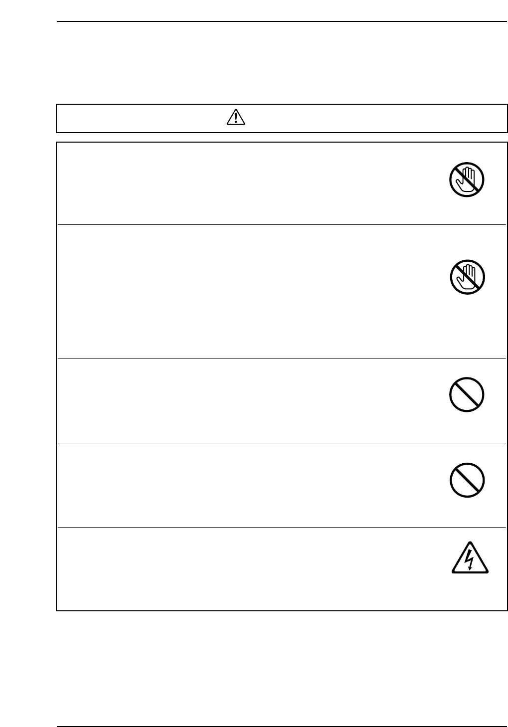 ● Body parts or clothing may be caught in the machine causing