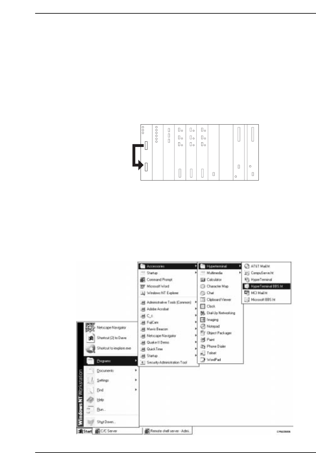 5. Start the hyper terminal. At the status bar, click [START], then select [PROGRAM] -