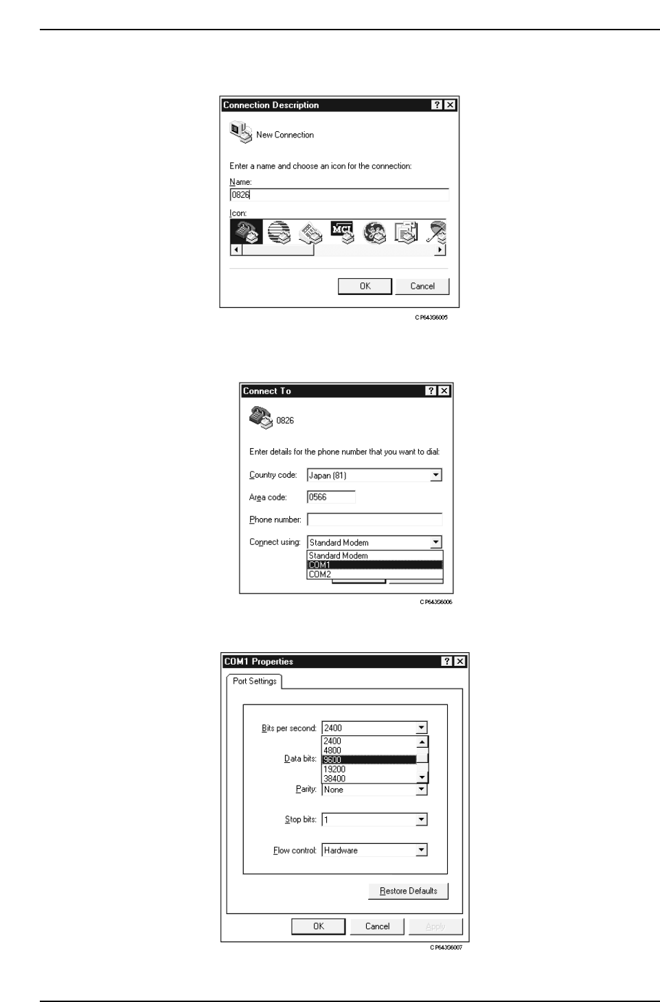 8. Specify a “9600” setting at the “Bit/Sec” item (baud rate).