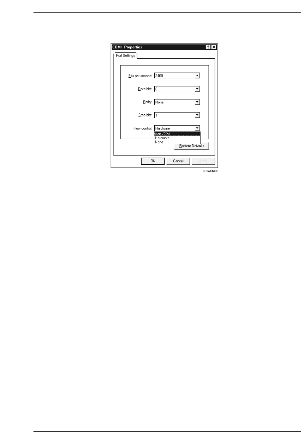 9. Specify an “Xon/Xoff” setting at the “Flow Control” item.