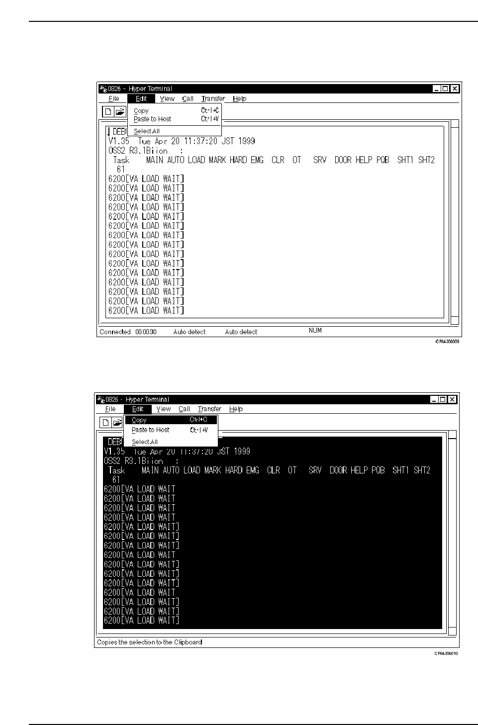 12. After the output is completed, save the trace data in a text format. 1) Click [EDIT], then click [SAVE ALL (s)]. 2) Click [EDIT], then click [COPY] (or Ctrl + C). Part 5 Chapter 5 T roubleshooting Edition 1.0 5-5-6 C…
