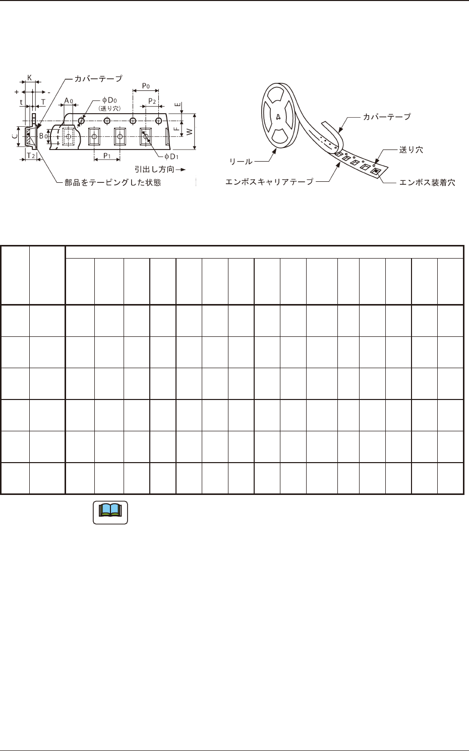 また、カバーテープの厚さは、0.07 mm 以下(粘着質含む)とします。