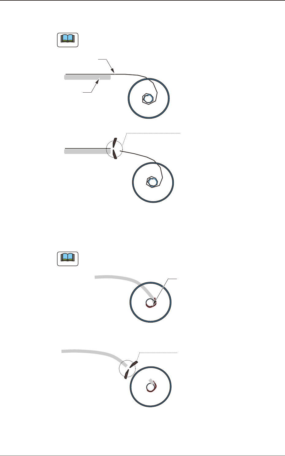テープ終端部を粘着テープが残らないようにハサミで切って、リールを
