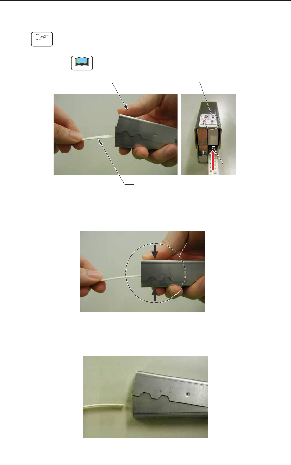 (2) 冶具を押し込み、テープ先端を潰します。