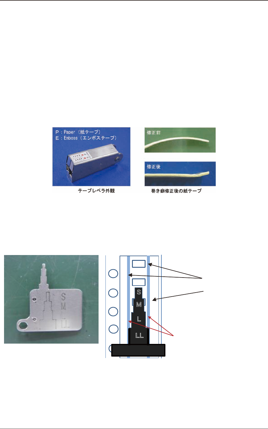 テープ先端処理の挿入口に“紙 / エンボス”の 2 つが装備されており、