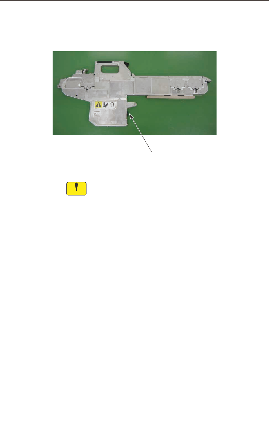 テープフィーダ先端のフック部をぶつけると変形が生じ、吸着