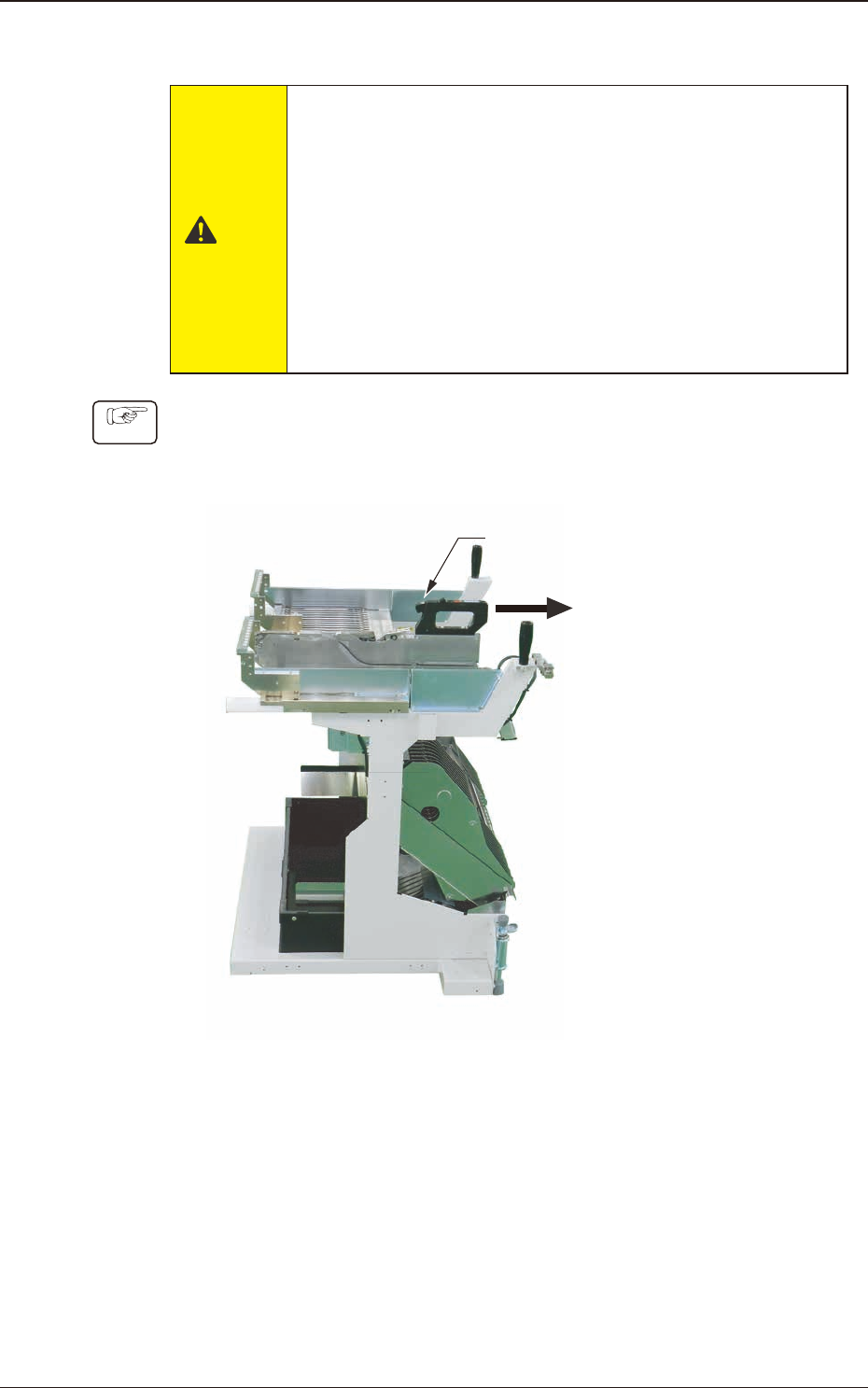(2) テープフィーダをゆっくり右手で、手前へ引寄せる。