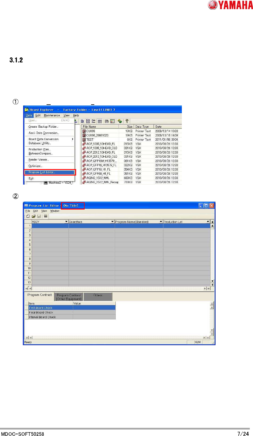 Y AMAHA MOTOR CO. , L TD. IM Business Unit SMT Softw are Engi neering Group 3. P-T ool: Program List Editor 3.1 Make Progra m List When you op erate to the Production Lot, you h ave to link the Production Lot and the pro…
