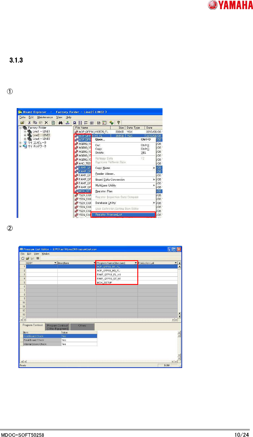 Y AMAHA MOTOR CO. , L TD. IM Business Unit SMT Softw are Engi neering Group 3. "Launch with the program name registration” Select board dat a and view the right c lick menu, then click “Register Program L ist”. Prog…